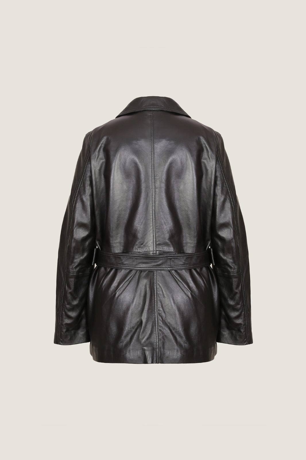 Classic Brando Motorcycle Design: Wide lapel collar, asymmetrical zipper, and vintage black detailing for a bold biker aesthetic.